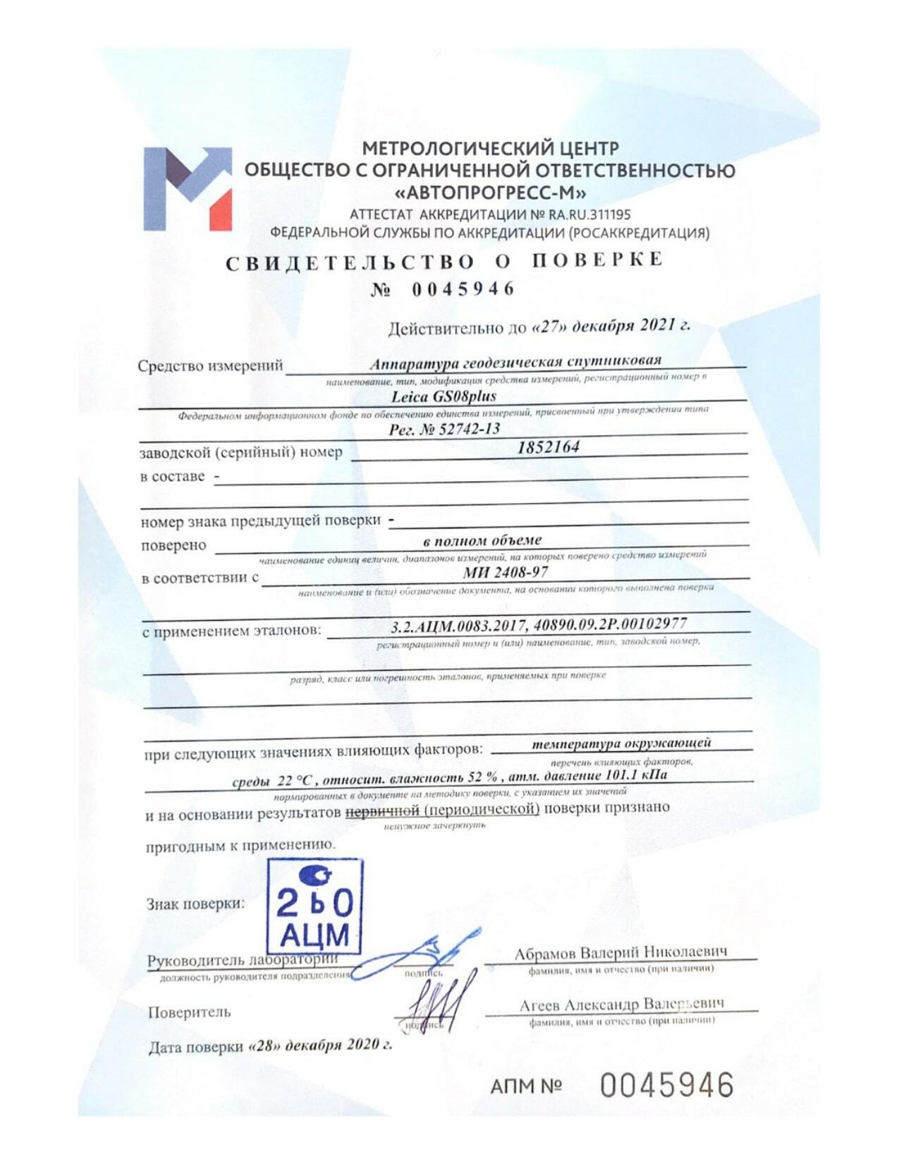 Работаем с современным оборудованием удостоверенным свидетельством о поверке