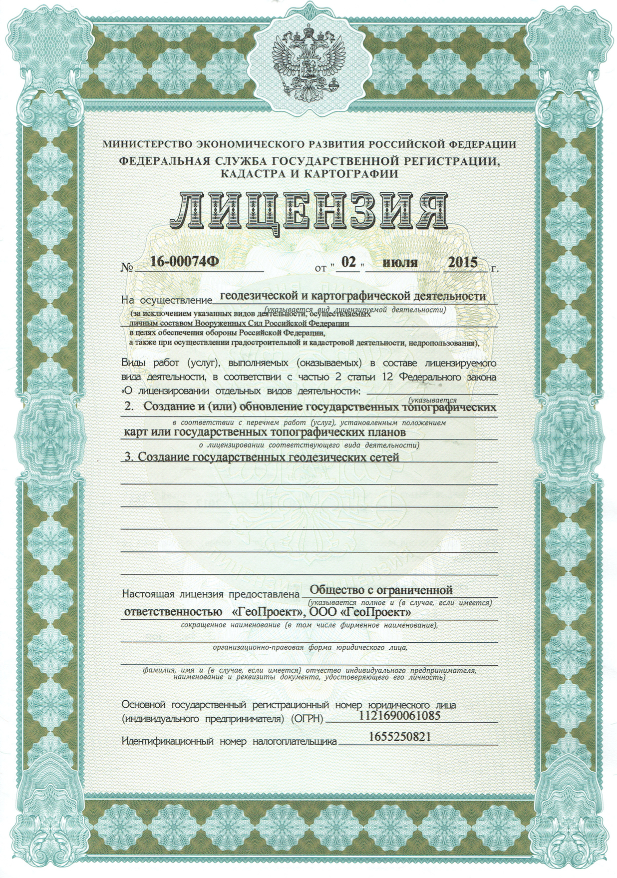 ООО "ГеоПроект" ведет профессиональную деятельность с начала декабря 2012 года